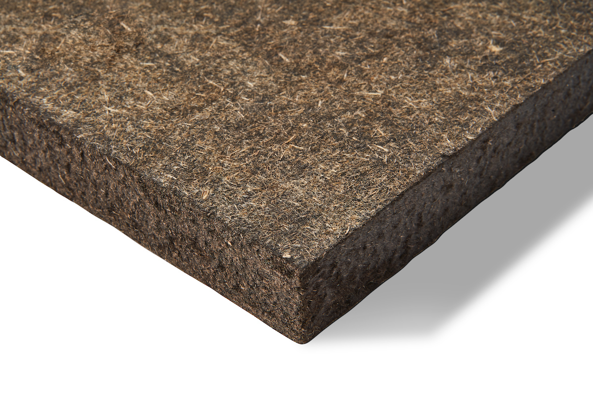 Our production process converts this waste material with only the addition of natural bitumen, waste newsprint and water into a board material.